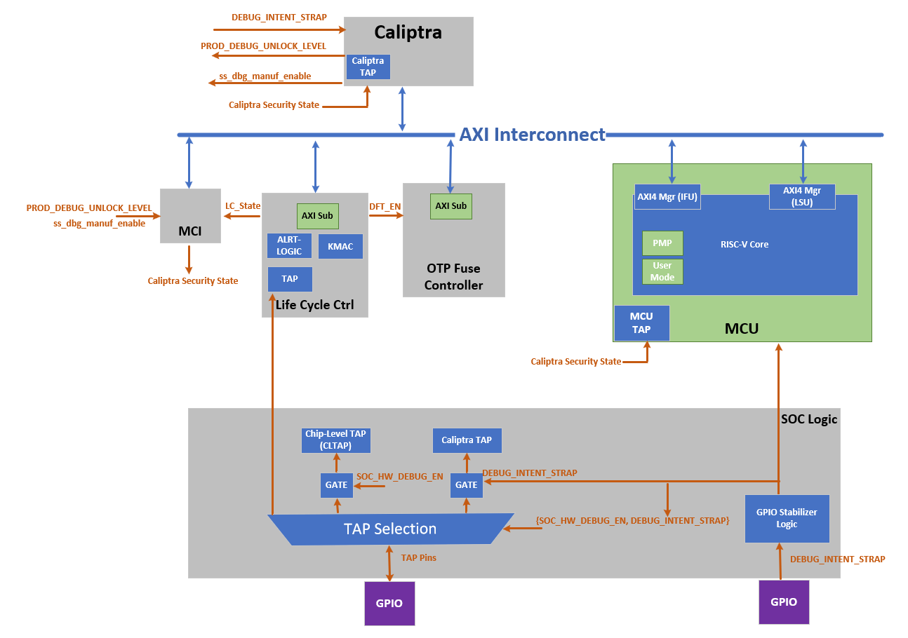 As an extension to controlling configuration, the Silicon RoT must control the security states (for more information, see Caliptra Security States). Certain security states by design grant full invasive capabilities to an external operator, for debug or field analysis.